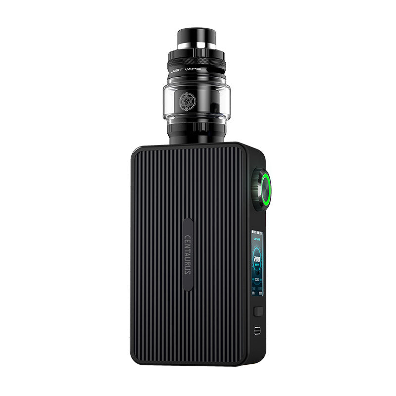 Lost Vape Centaurus M200 Box Mod Kit features a 200W Quest 2.0 chipset, variable wattage mode, temperature control settings, a color screen, two 18650 batteries (not included), a fire button that rotates to make adjustments, and a Type-C port to recharge the cells. The kit includes the Centaurus Sub Ohm Tank with UB max coils, top-to-bottom airflow control, a 5ml juice reservoir, and easy refills.the firing button with an LED ring that rotates to make adjustments to the settings. Where one would normally find plus/minus buttons on other mods.